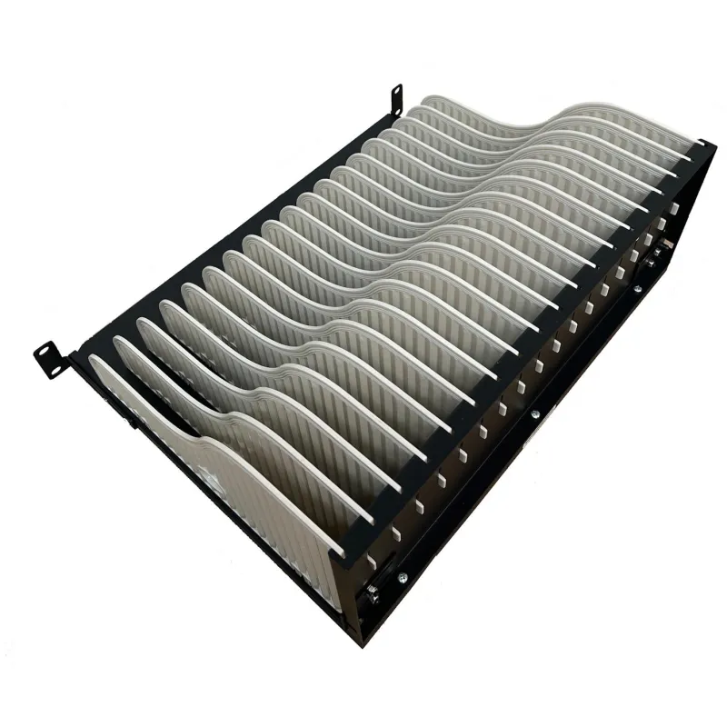 Optimice su espacio y mantenga sus dispositivos cargados y listos para usar con nuestro estante de carga, diseñado para acomodar hasta 18 computadoras portátiles, tabletas y teléfonos inteligentes. Perfecto para oficinas, escuelas y entornos profesionales, este estante se puede montar en rack de 19" y ofrece una solución de carga ordenada y segura.