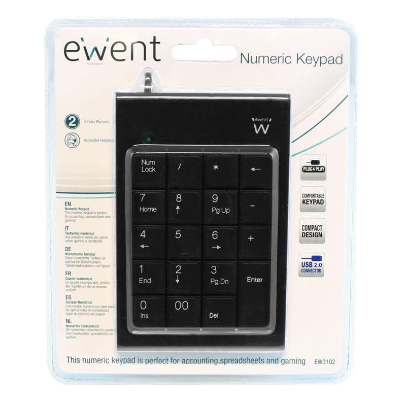 Disfrute de una comodidad informática óptima con el teclado numérico Ewent EW3102. El teclado está equipado con teclas cómodas para la entrada de datos numéricos. Puede usar el teclado para hojas de cálculo, contabilidad y todas las aplicaciones financieras. El teclado Ewentt es el complemento perfecto para su computadora portátil. Conéctelo a un puerto USB para comenzar. Gracias a su diseño compacto, puede llevar fácilmente el teclado a todas partes en la bolsa de su computadora portátil.