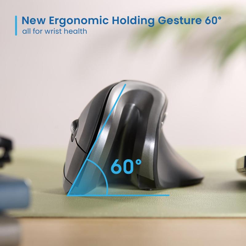 DISEÑO ERGONÓMICO PARA MAYOR COMODIDAD: Su diseño vertical reduce la tensión en la muñeca, permitiendo un uso prolongado sin molestias. Ideal para quienes pasan largas horas frente al ordenador, este ratón ergonómico inalámbrico proporciona una postura más natural y cómoda para la mano.