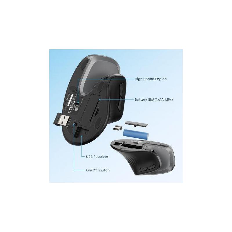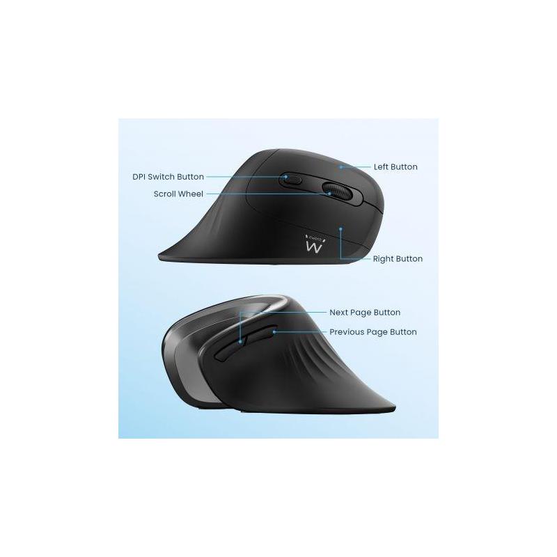 Ratón Ewent EW3154 diseño ergonómico vertical 3200 DPI 6 botones inalámbrico 2.4 GHz precisión y comodidad, color Negro