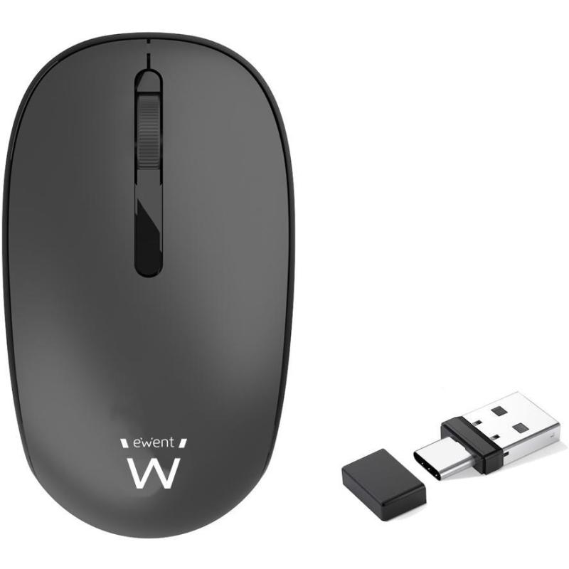 Ratón Ewent EW3206 Diseño ergonómico clic silencioso 1000 DPI ajustables, conexión inalámbrica RF 2.4 GHz con nano receptor color Negro