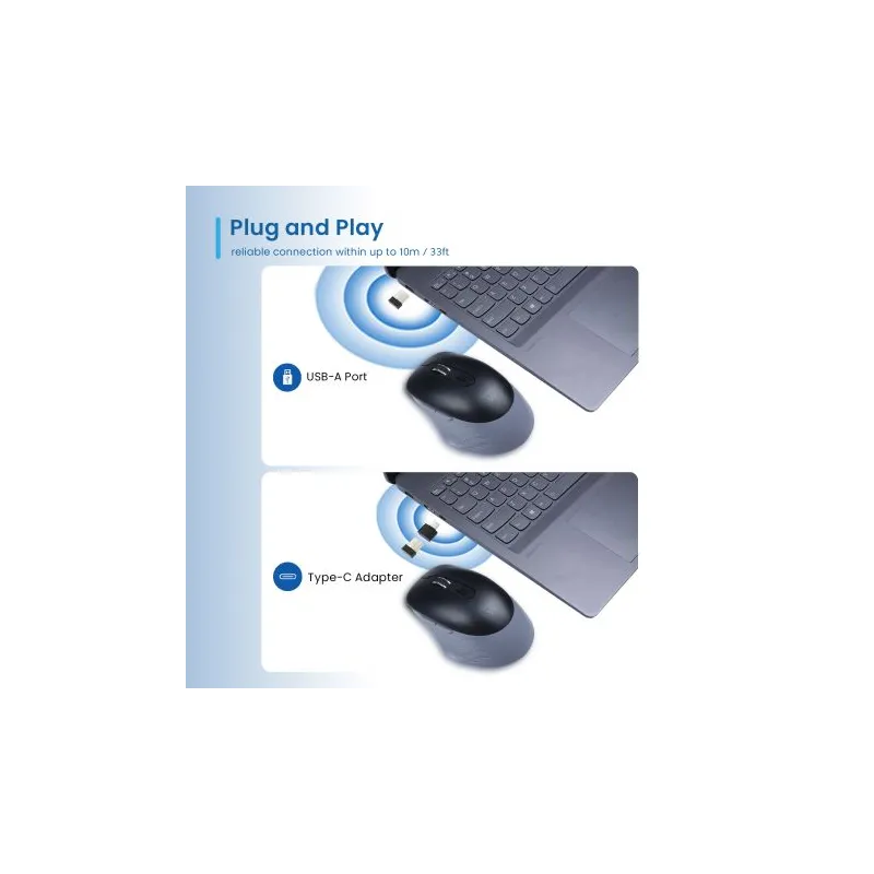 FUNCIONAMIENTO SILENCIOSO: Para mejorar aún más su entorno de trabajo, nuestro mouse está equipado con botones de clic silenciosos. Estos botones proporcionan una experiencia de clic silenciosa y discreta, promoviendo un ambiente más tranquilo y reduciendo las interrupciones en entornos compartidos o silenciosos.