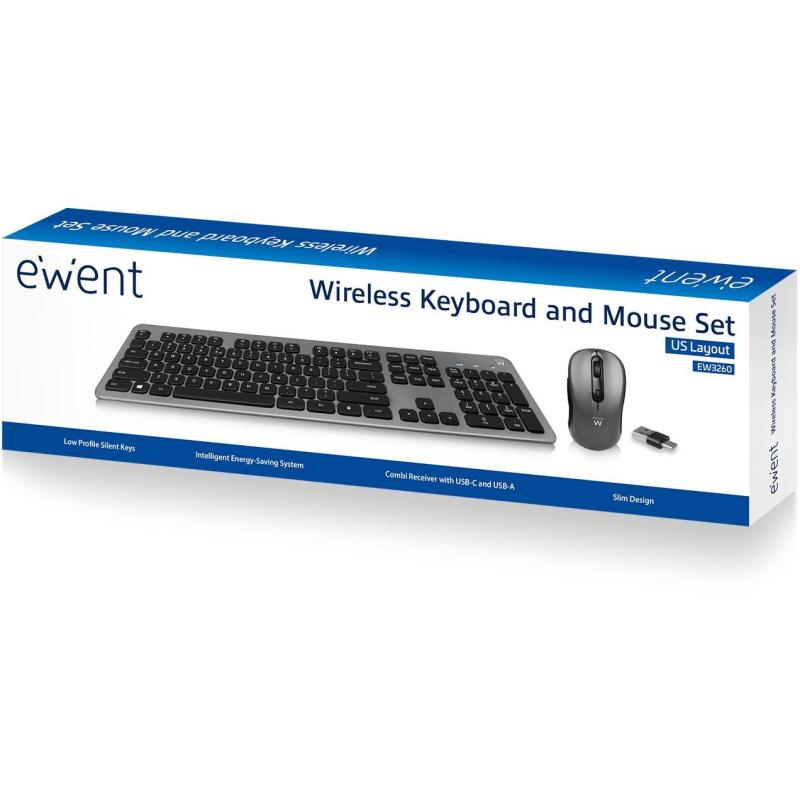 Ewent EW3272 Kit de Teclado Inalámbrico + Ratón Gris/Negro