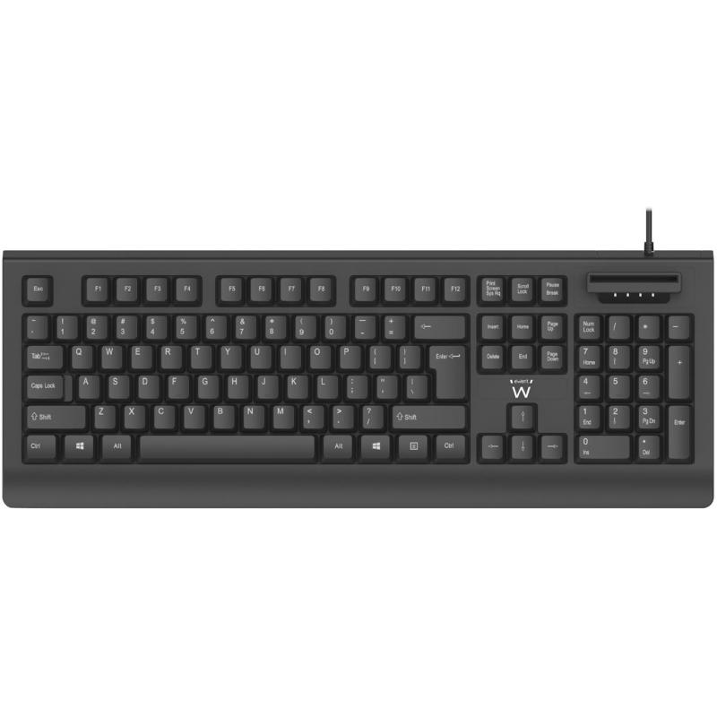 Teclado Ewent EW3286 USB-A con Lector DNI, Longitud de Cable de 1.5 M, Idioma Español, Color Negro
