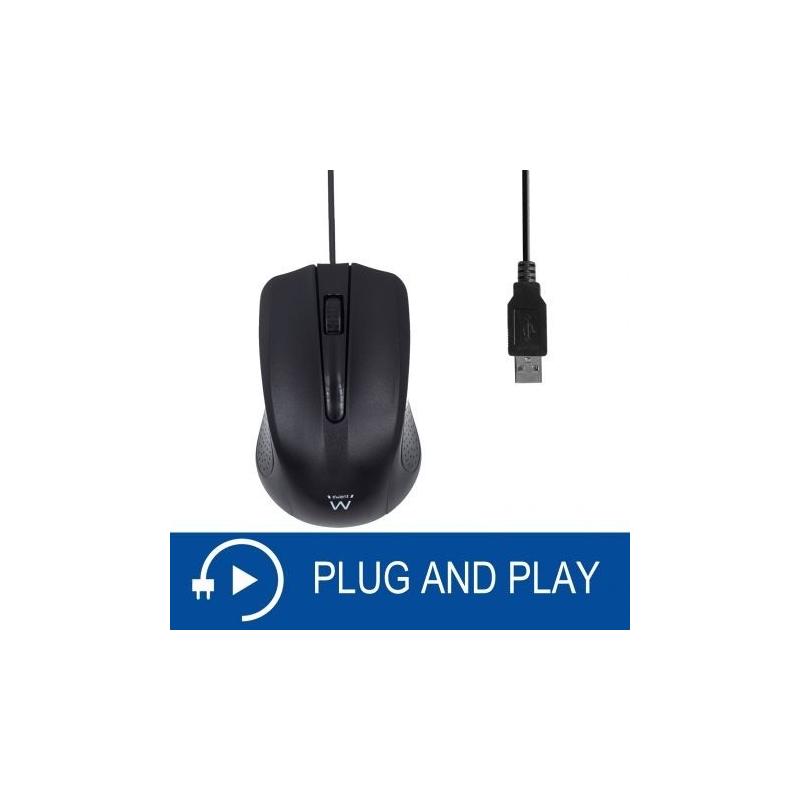 Ewent EW3300 Ratón Óptico Ambidextro USB 1000DPI Negro