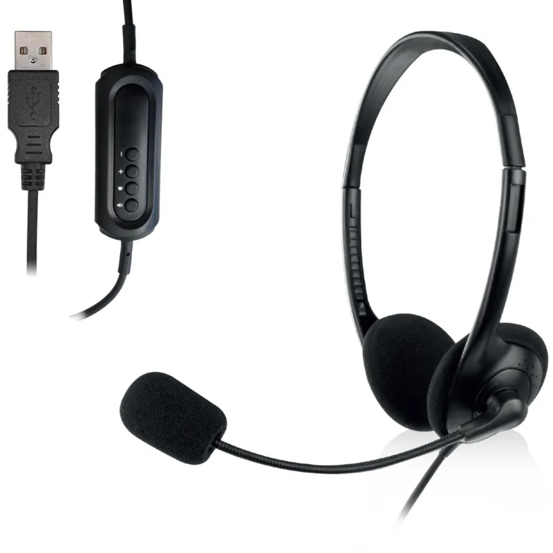 EWENT EW3568 Auricular con cable USB y micrófono para llamadas y música, 2.1m, confort máximo