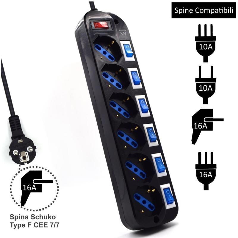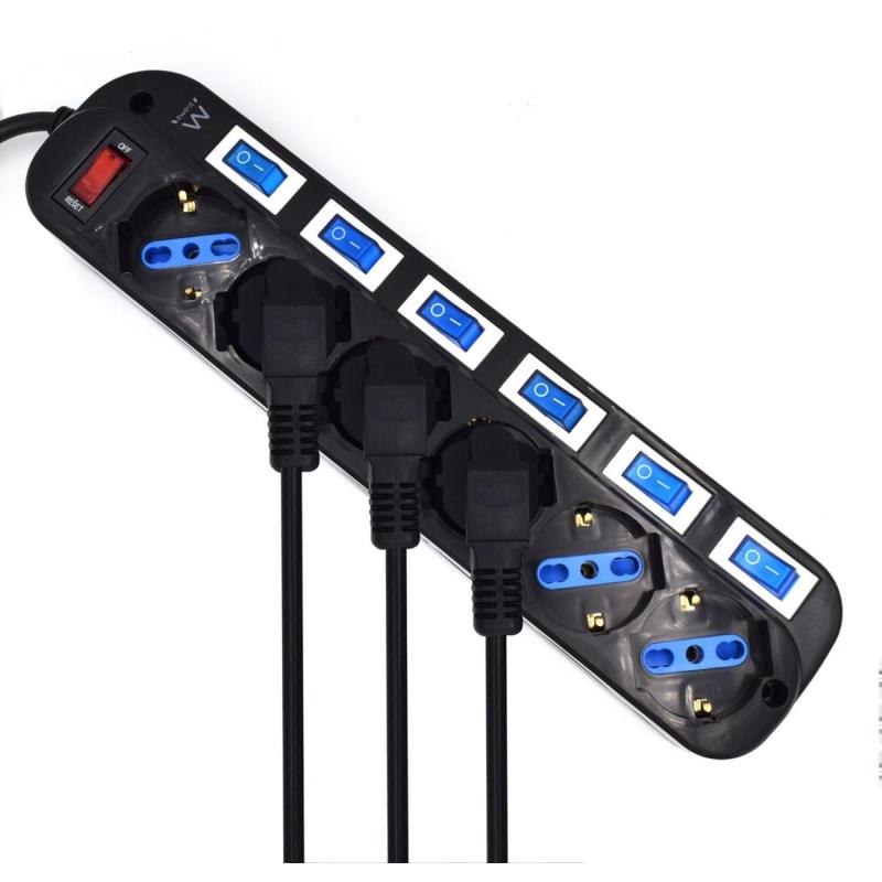 Regleta Ewent EW3851 con 6 tomas Schuko 3500W AC 220v cable de 1,5m color negro