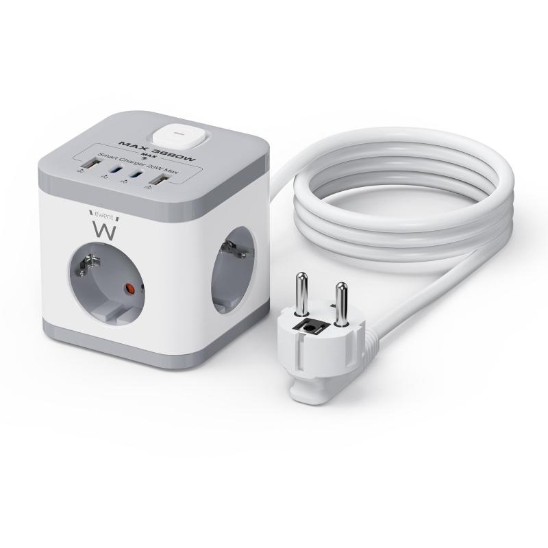 DISEÑO FUNCIONAL Y FÁCIL DE INTEGRAR EN CUALQUIER ESPACIO: El Regleta Ewent EW3863 no solo destaca por su rendimiento, sino también por su diseño compacto y práctico. Con unas dimensiones de 80 x 80 x 81 mm y un peso de solo 390 g, es fácil de colocar en cualquier rincón del hogar u oficina. El cable de 1,5 metros proporciona libertad de movimiento, mientras que el factor de forma angular del enchufe facilita su uso en espacios reducidos. Su carcasa en plástico resistente y colores neutros lo hacen discreto y elegante. Además, los puertos USB Tipo C permiten cargar dispositivos modernos con rapidez, complementando su potencia de salida de 3680 W para una experiencia completa.
