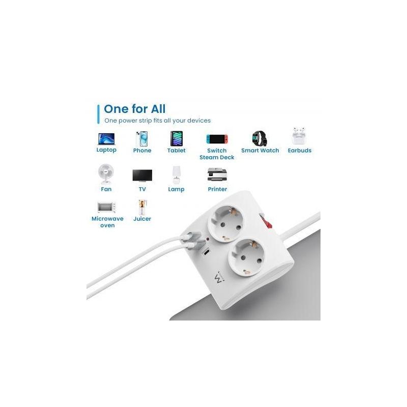 Fabricada en un elegante color blanco, combina funcionalidad y estética. Su longitud de cable de 1,5 metros ofrece flexibilidad en la colocación, adaptándose a diferentes entornos. Compatible con un voltaje de entrada de 110 - 230 V y una potencia máxima de 3680 W, garantiza un rendimiento óptimo para una amplia gama de dispositivos eléctricos. Además, los puertos USB proporcionan una salida de 5 V con una corriente de hasta 3 A, asegurando una carga rápida y eficiente.