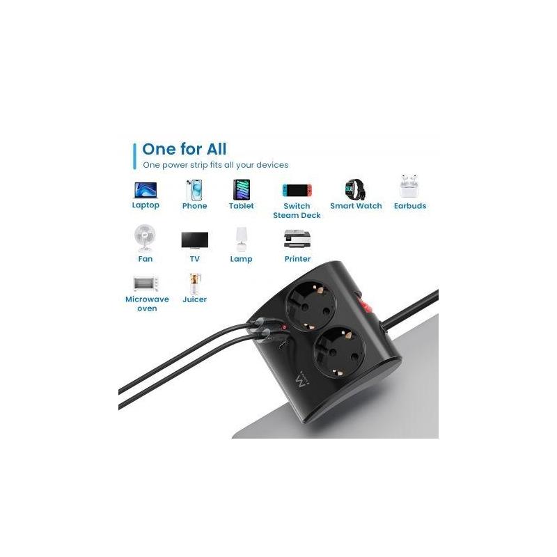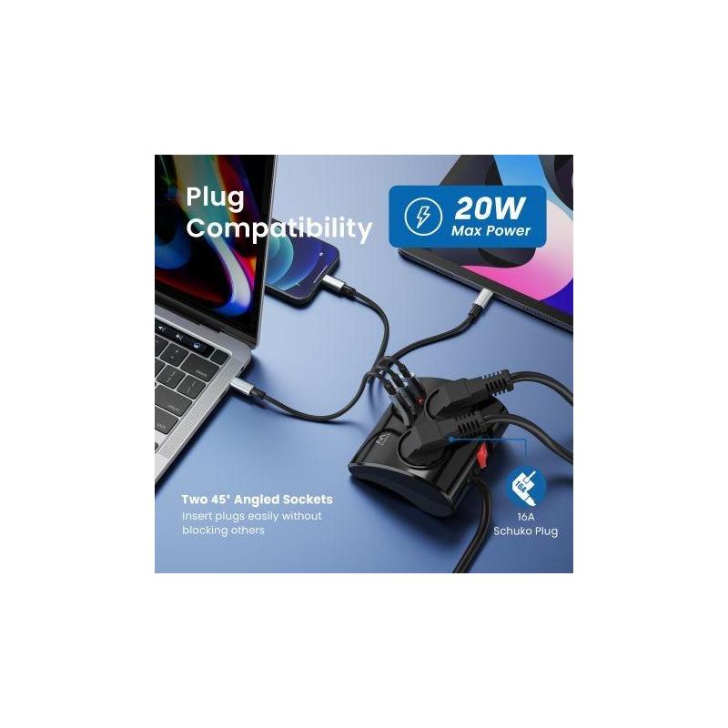 DISEÑO QUE AHORRA ESPACIO: El EW3870 cuenta con un diseño que ahorra espacio y ocupa solo un espacio limitado en su escritorio. Todas las tomas de corriente y puertos USB son fácilmente accesibles. Está equipado con un cable de 1,5 m de longitud. Además, el enchufe Schuko de 16 A, que ahorra espacio, está equipado con un ángulo de 90° que lo hace ideal para insertarlo en tomas de corriente presentes en espacios estrechos y estrechos.