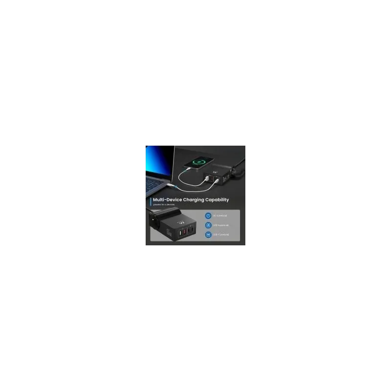 La estación de carga USB GaN de 65 W y la regleta de alimentación de escritorio tienen un PPS (fuente de alimentación programable) que es un estándar que se refiere a la tecnología de carga avanzada para dispositivos USB-C. Puede modificar el voltaje y la corriente en tiempo real alimentando la máxima potencia según el estado de carga de un dispositivo. La principal ventaja de PPS sobre otros estándares es su capacidad para reducir la pérdida de conversión durante la carga. Esto significa que se genera menos calor, lo que alarga la vida útil de la batería del dispositivo.
