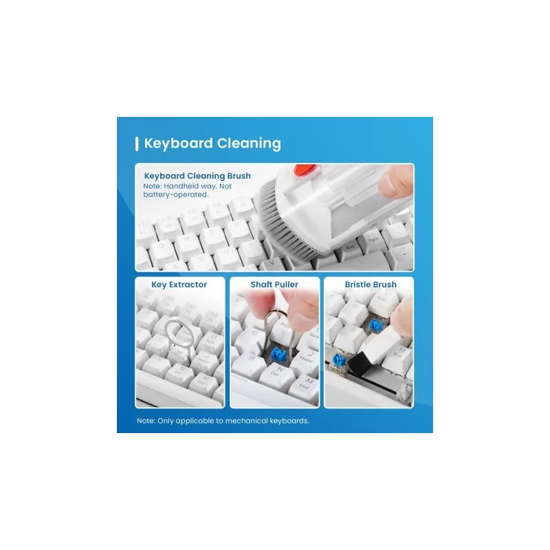 El  Kit de limpieza Ewent EW5631 no solo ofrece un producto de limpieza, sino un conjunto completo de herramientas diseñadas para el cuidado minucioso de tus dispositivos. Su herramienta de extracción de teclas permite retirar con precisión las teclas de los teclados mecánicos, facilitando una limpieza profunda y segura. Este kit de limpieza para equipos también incluye un paño de microfibra y un cepillo, ideales para eliminar polvo y suciedad sin rayar las superficies. El uso de material ABS en su construcción asegura una larga vida útil incluso en condiciones de uso intensivo. El Spray Ewent proporciona una solución integral para quienes buscan mantener su entorno tecnológico limpio y en óptimas condiciones sin complicaciones.