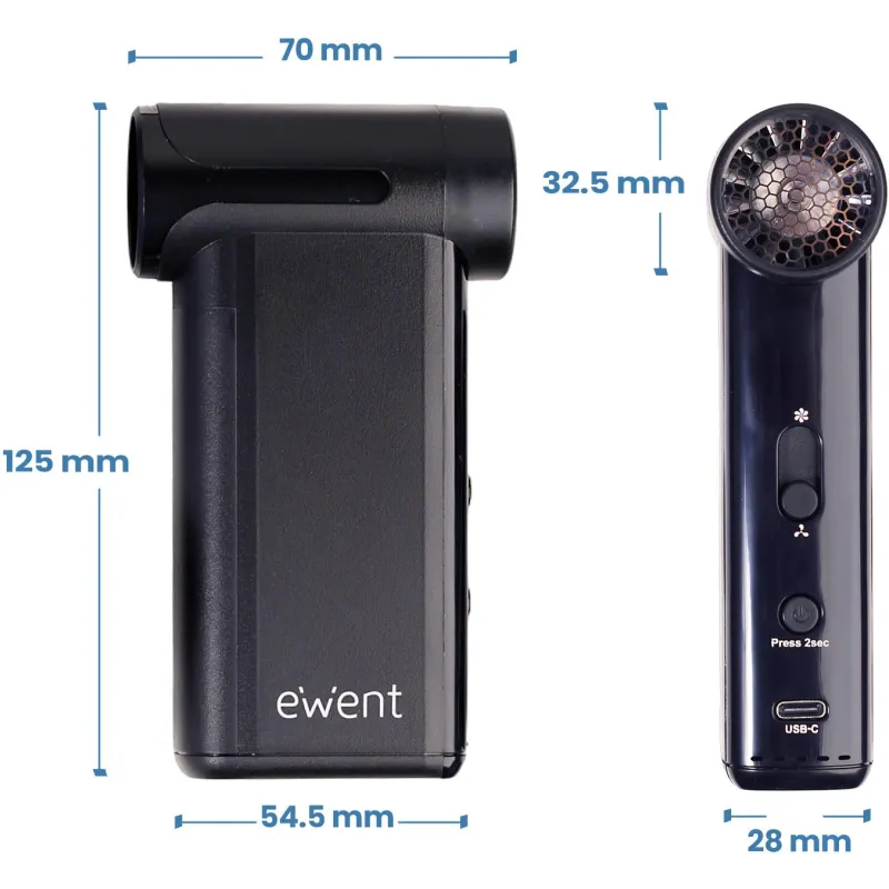 Pistola Aire Comprimido EWENT EW5681 con batería 2500mAh, velocidad 130000 RPM, flujo de aire de hasta 10 kPa, carga USB y potencia variable de 130 W