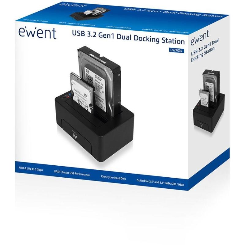 Ewent EW7014 Estación de Acoplamiento para Discos Duros Dual 2.5"-3.5" SSD Negro