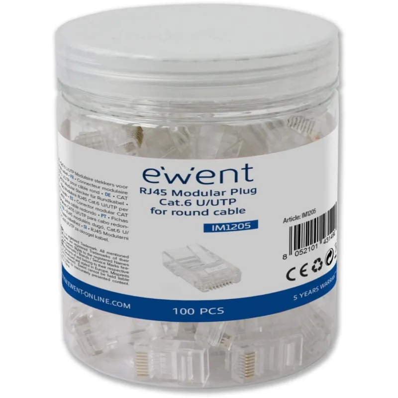 Ewent IM1205 Conector Modular CAT 6 U/UTP para Cable Redondo 100 unidades Transparente