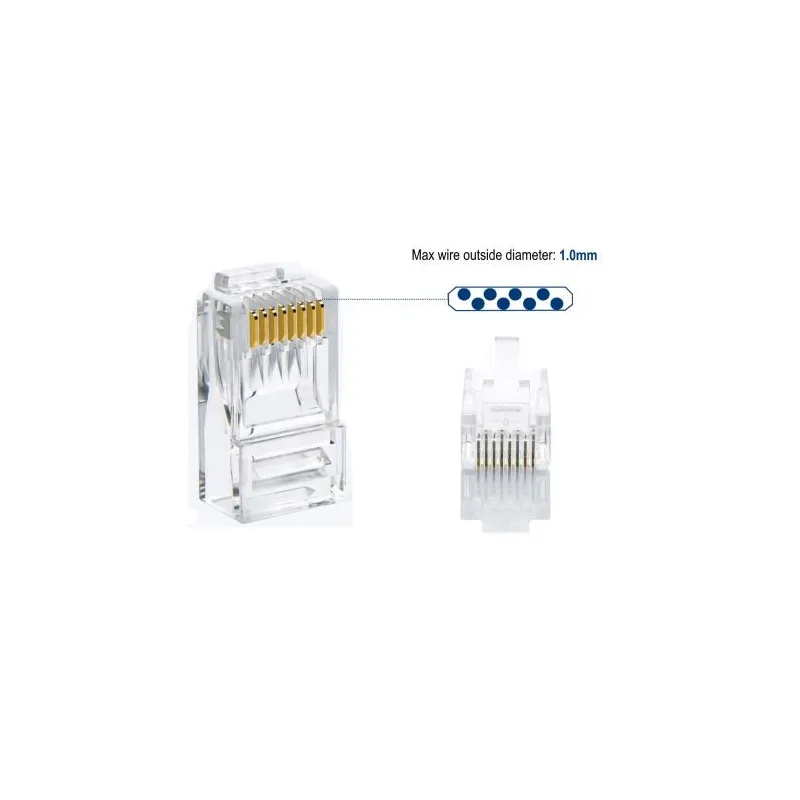 Los contactos del conector chapados en oro ofrecen una conductividad excepcional, soportando un voltaje de 250 V y una corriente de 2 A, lo que lo convierte en una opción segura para cualquier instalación de red. Además, el empaquetado en un tarro de plástico con 100 piezas facilita su almacenamiento y manejo.