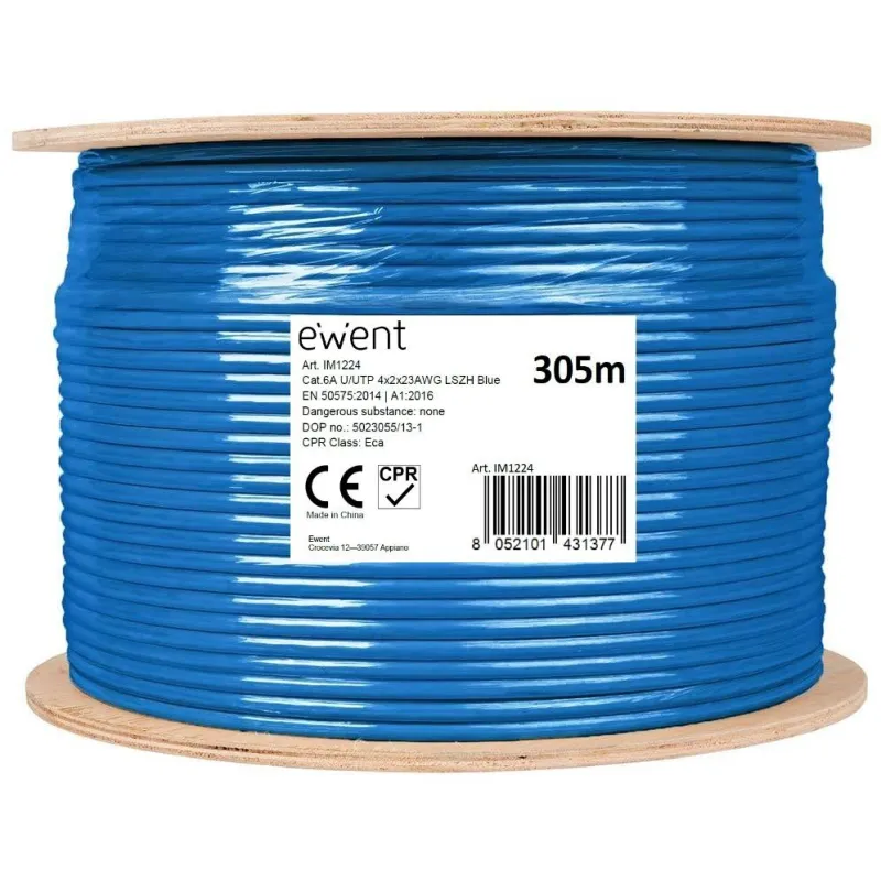 Ewent IM1224 Bobina de Cable de Red Cat.6A U/UTP LSZH 305 Metros Azul