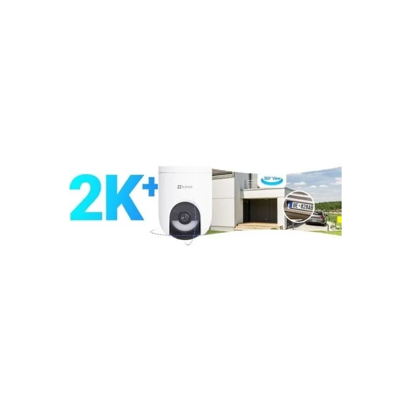 Beneficios clave: resolución 2K+ QHD, batería recargable para uso sin cables, diseño exterior resistente, rotación motorizada de hasta 340º, conectividad Wi-Fi, control remoto desde app EZVIZ, visión nocturna avanzada, grabación en la nube o local según versión, audio bidireccional, integración en ecosistema EZVIZ