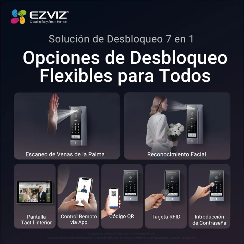 El videoportero EZVIZ HP7 Pro 4K es para quien quiere una entrada bien controlada desde una pantalla grande y con apertura sin llaves sin depender siempre del móvil. La idea es simple: ver con mucho detalle quién llama, hablar desde el monitor interior y abrir puerta o portón con el método que más convenga.