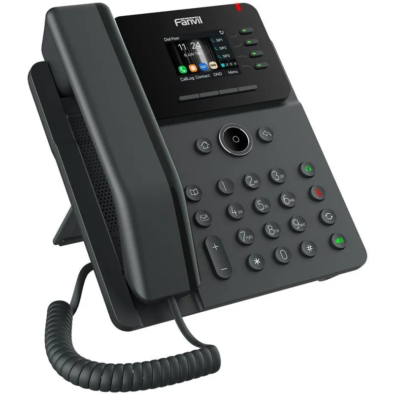 El teléfono IP es un dispositivo de comunicación avanzado diseñado para optimizar la conectividad empresarial. Con su color elegante negro y la capacidad de montaje en pared, este teléfono no solo es funcional, sino también estéticamente adaptable a cualquier entorno de oficina.