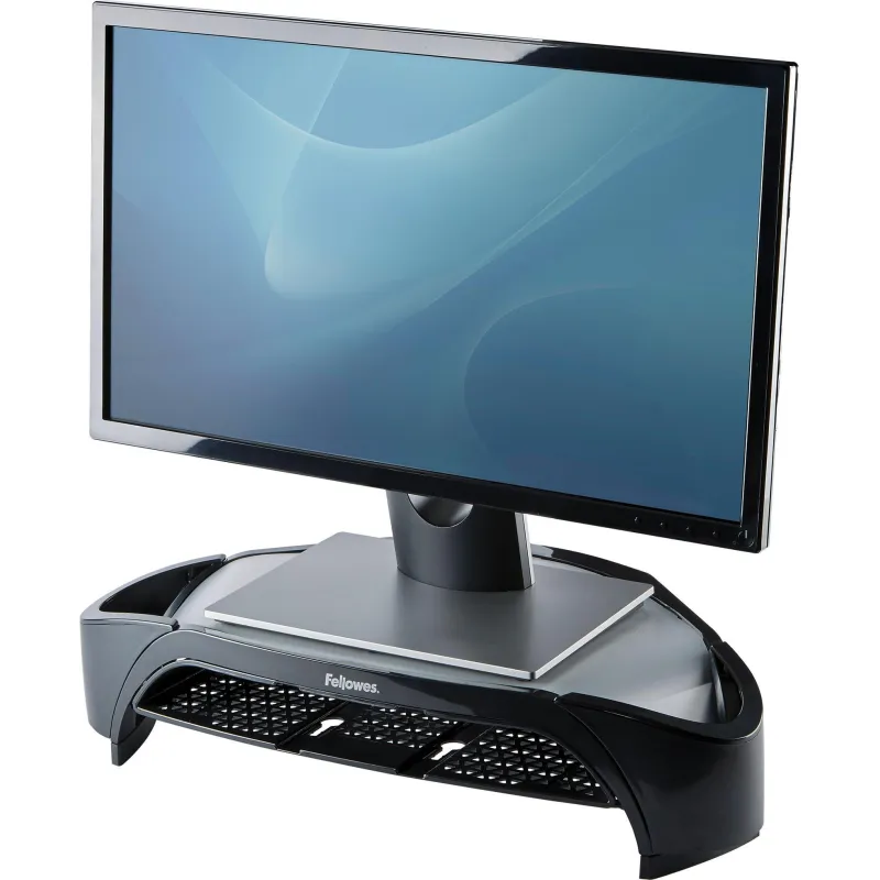 UNOS POCOS AJUSTES FÁCILES PUEDEN HACER UNA GRAN DIFERENCIA EN TU RUTINA DIARIA: Unos pocos ajustes fáciles en tu estación de trabajo pueden hacer una gran diferencia en tu rutina diaria. Mover la cabeza para ver la pantalla o leer documentos requiere que inclines y gires el cuello y la parte superior de la espalda. Colocar la pantalla incorrectamente puede ejercer una gran tensión en tus ojos, cuello y hombros, por lo que el Elevador de Monitor Fellowes Smart Suites es una necesidad para tu espacio de trabajo, ya que te permite colocar tu monitor en una posición de visualización más ergonómicamente correcta para ti. Este soporte ajustable para monitor puede soportar monitores CRT o TFT con un peso máximo de 10 kg y su diseño que ahorra espacio te permite guardar tu portátil debajo del elevador de monitor para su uso en la oficina. Acomoda el ángulo de visión ideal que mejor se adapte a tus necesidades, el Elevador de Monitor Smart Suites Plus cuenta con 3 configuraciones de altura ajustable (100-150 mm) que te permiten encontrar una posición de pantalla cómoda adaptada a ti. Este elevador de monitor ha sido probado por FIRA International Ltd para cumplir con los requisitos ergonómicos establecidos en la Legislación Europea de Salud y Seguridad: EN ISO 9241-5.