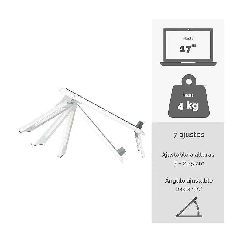 ESTILO Y FUNCIONALIDAD EN UN SOLO PRODUCTO: Descubre el soporte para portátil que fusiona la utilidad con la estética. Su diseño bicolor, en tonos grises y blancos, se integra perfectamente en cualquier espacio, ya sea tu oficina o tu hogar. Elaborado en acrilonitrilo butadieno estireno (ABS), un material robusto y de larga duración, este soporte es compatible con pantallas de portátiles de hasta 43,2 cm (17").