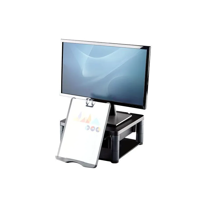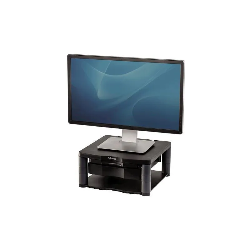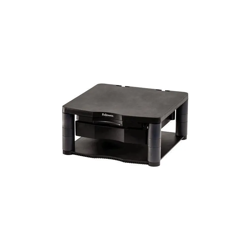 UNOS POCOS AJUSTES FÁCILES PUEDEN HACER UNA GRAN DIFERENCIA EN TU RUTINA DIARIA: Unos pocos ajustes fáciles a tu estación de trabajo pueden hacer una gran diferencia en tu rutina diaria. Mover la cabeza para ver la pantalla o leer documentos requiere que inclines y gires el cuello y la parte superior de la espalda. Colocar la pantalla incorrectamente puede ejercer una tensión seria en tus ojos, cuello y hombros, por lo que este soporte para computadora Fellowes es una necesidad para tu espacio de trabajo, ya que te permite colocar el monitor en una posición de visualización más ergonómicamente correcta para ti. Este soporte ajustable para monitor puede soportar hasta un monitor CRT o TFT/LCD de 21 pulgadas o un peso máximo de 36 kg, y cuenta con anillos de pie antideslizantes, asegurando estabilidad en cualquier superficie. Acomoda el ángulo de visión ideal que mejor se adapte a tus necesidades, el soporte para computadora premium plus cuenta con tres configuraciones de altura ajustable (115-165 mm) que te permiten encontrar una posición de pantalla cómoda adaptada a ti. Organiza tu espacio de escritorio con este elevador de monitor que cuenta con un cajón de almacenamiento de 51 mm y un soporte para documentos incorporado. Este elevador de monitor está acreditado por FIRA International, un acreditador ergonómico independiente.