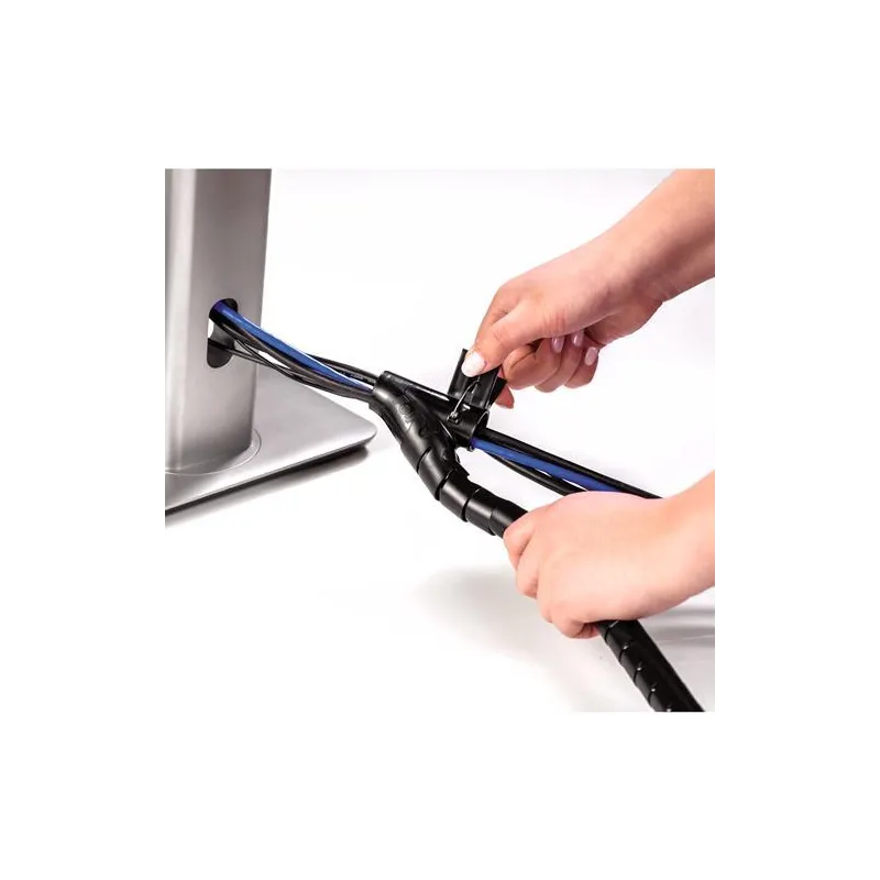 LA SOLUCIÓN MÁS SENCILLA PARA EL DESORDEN Y EL MAL ASPECTO QUE PRODUCEN LOS CABLES: La solución más sencilla para el desorden y el mal aspecto que producen los cables. Con una acción parecida a una cremallera, realizada con la exclusiva herramienta suministrada, todos los cables se ordenarán en unos segundos.