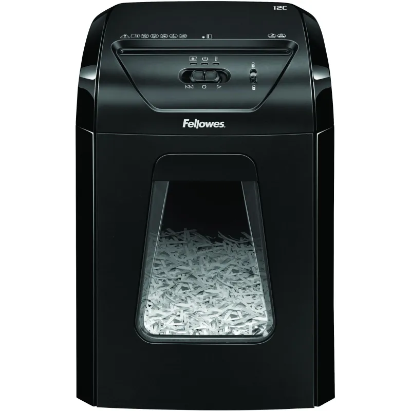 Destructora de papel: Fellowes Destructora 12C Negra Trituradora de Papel hasta 12 Hojas y Tarjetas de Crédito.