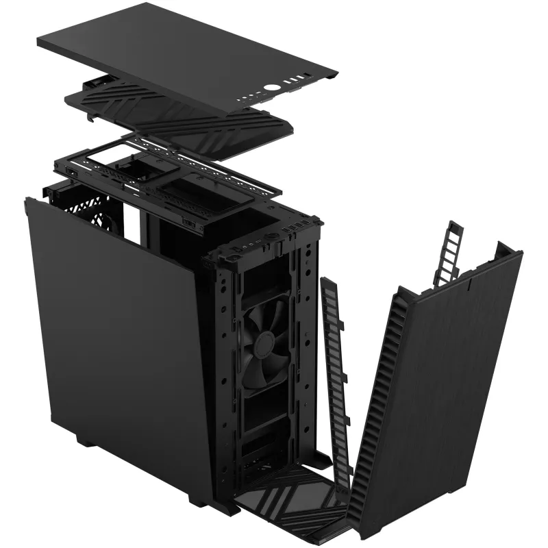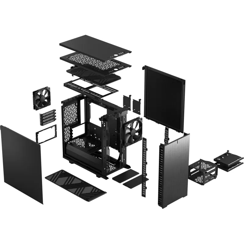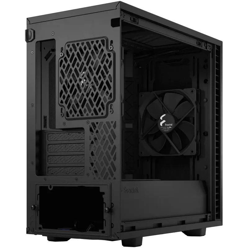 Torre Fractal Design Define 7 Mini FD-C-DEF7M-01 con ventiladores frontales 140 mm, compatible con placas base micro ATX, diseño compacto en acero negro