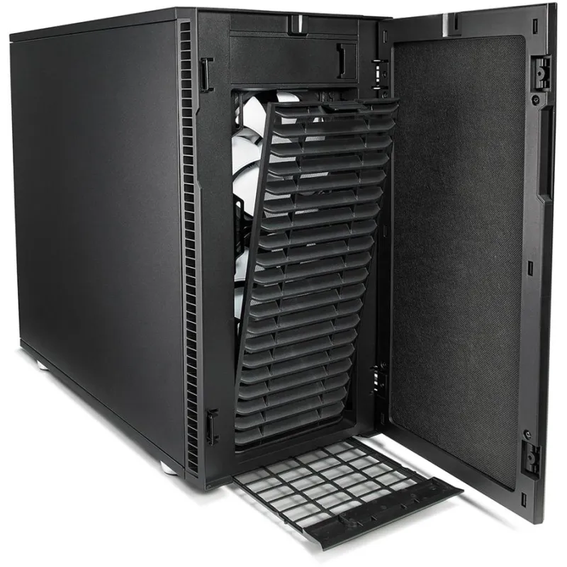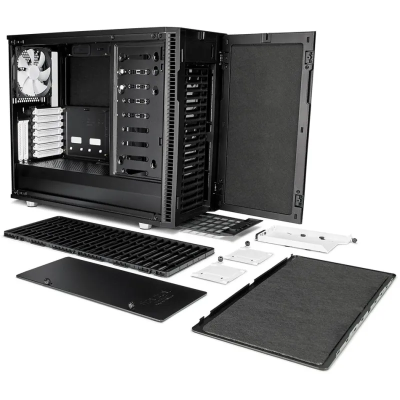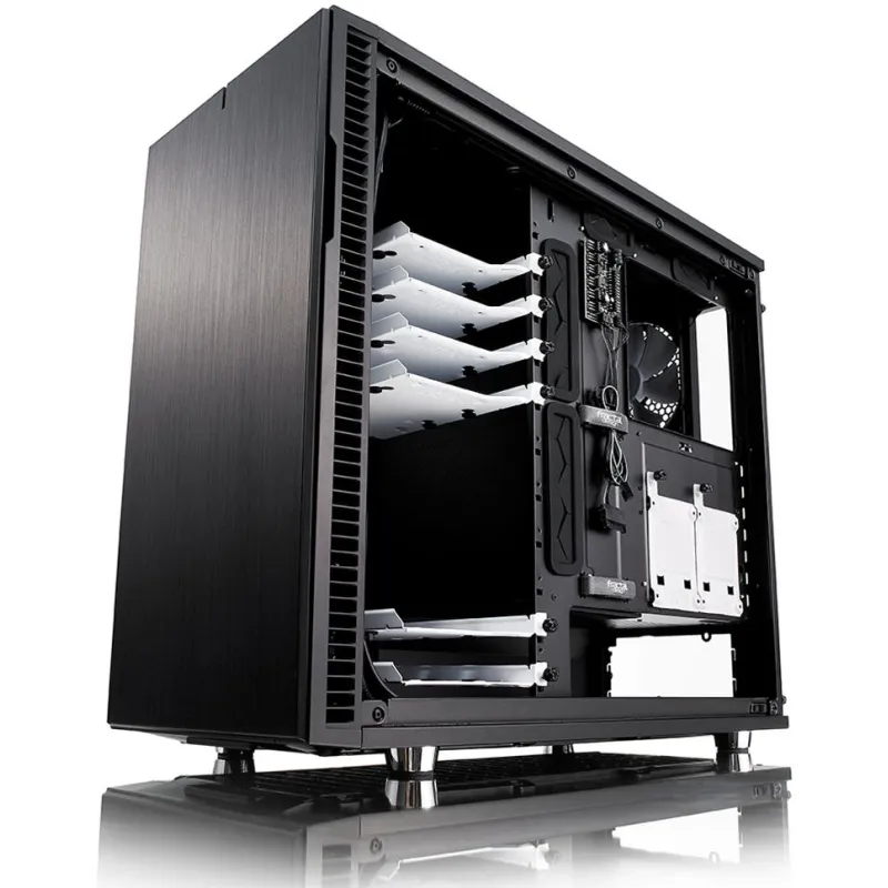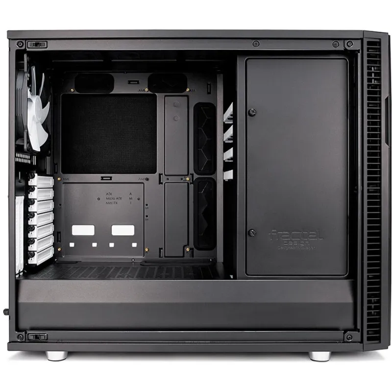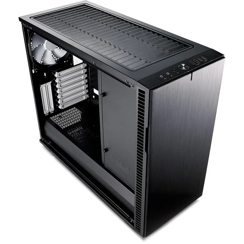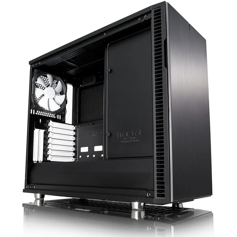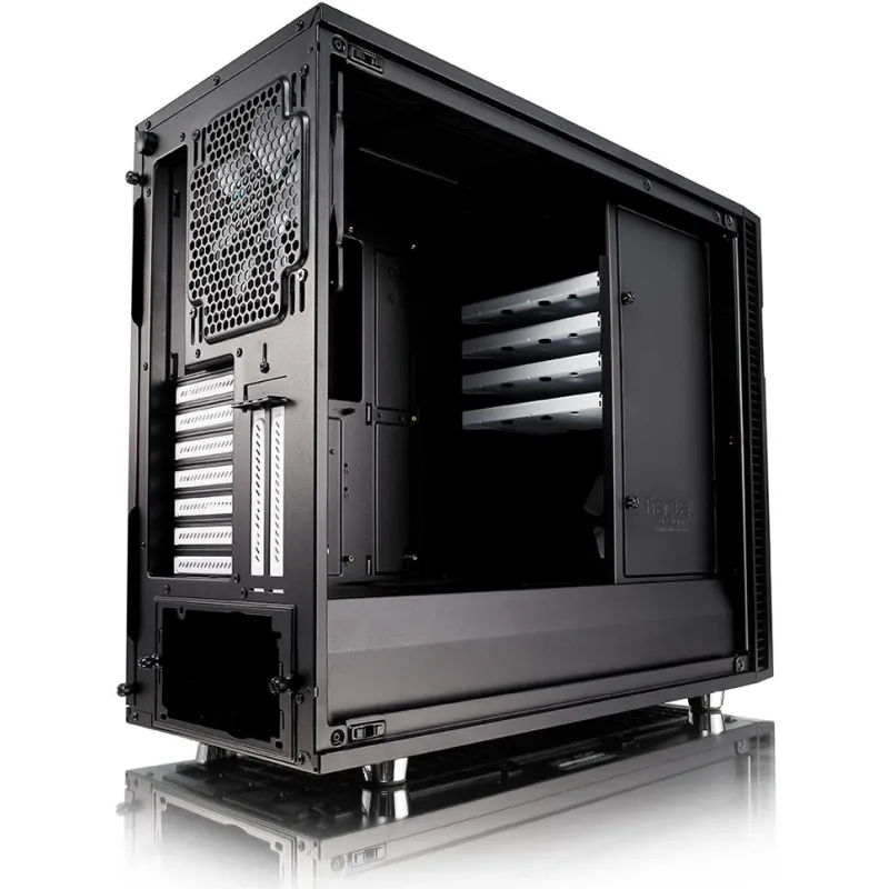 La Fractal Design R6 Negra es una solución robusta para quienes buscan una carcasa versátil, elegante y altamente funcional. Fabricada en aluminio con acabado en color negro, esta torre tipo Midi Tower es adecuada para configuraciones de alto rendimiento, especialmente orientadas al juego. Su compatibilidad con placas base ATX, EATX, ITX y micro ATX permite una gran variedad de configuraciones. Incluye 6 bahías de 3.5 pulgadas y 8 bahías 2.5 pulgadas, lo que ofrece una excelente capacidad de almacenamiento interno. La gestión de cables está optimizada para mantener el interior limpio y ordenado, y cuenta con filtro anti-polvo para preservar los componentes. Además, dispone de puertos USB 3.2 Gen 1 tipo A y USB 2.0, así como entrada y salida de audio en el panel frontal.