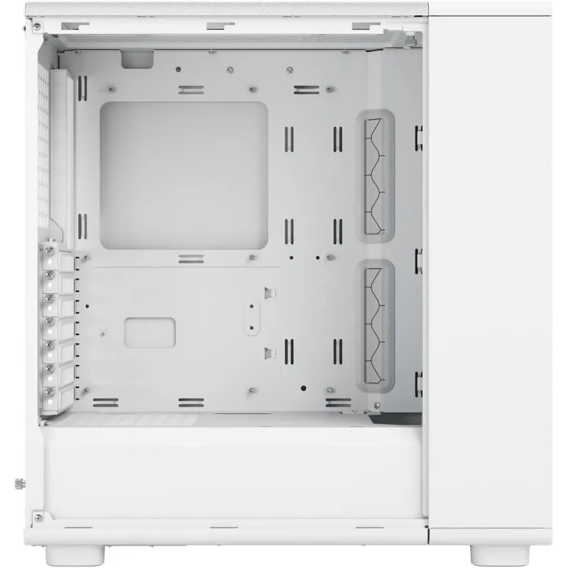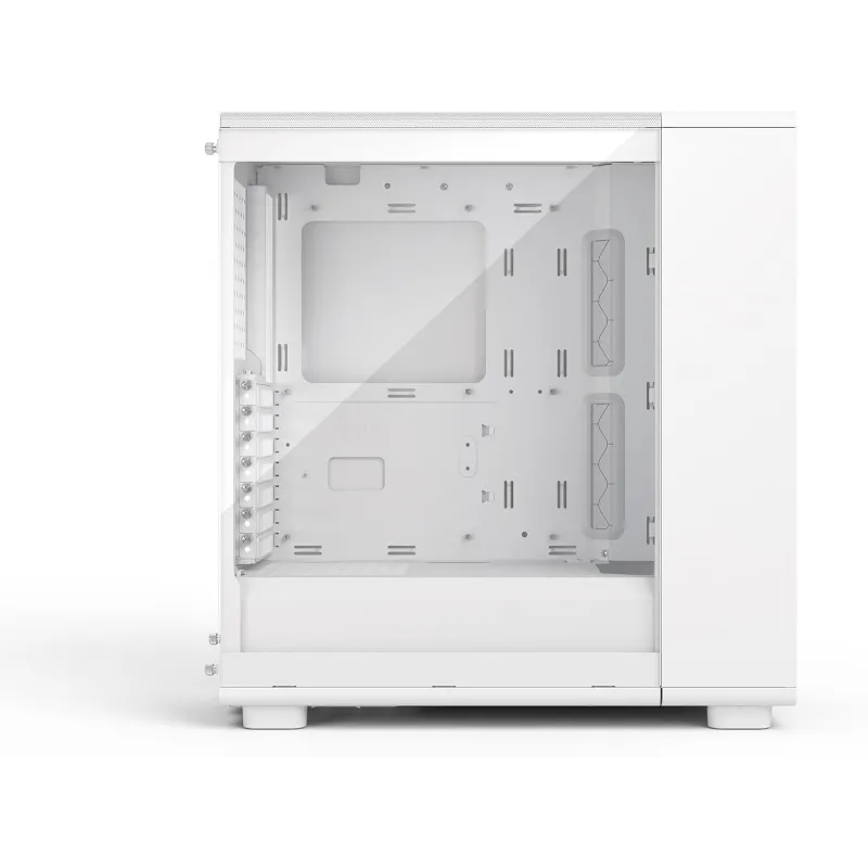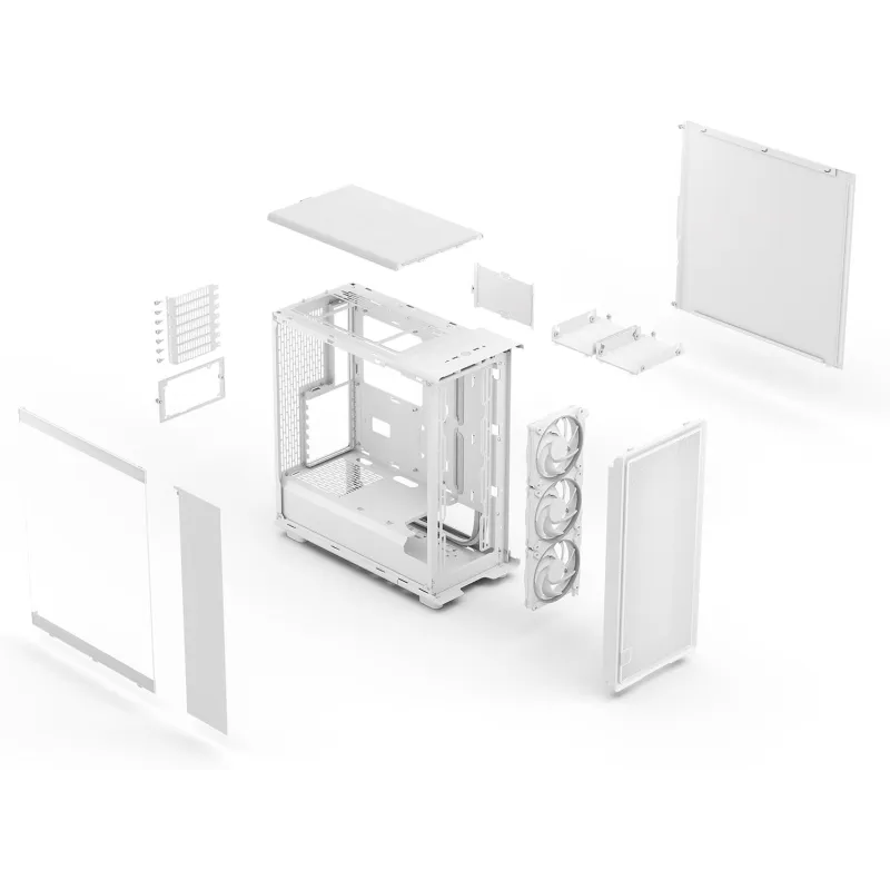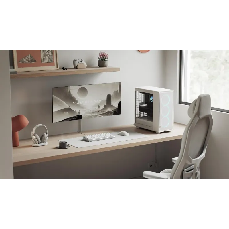 El diseño blanco combina con escritorios claros y setups limpios, y el panel lateral de cristal templado Clear Tint ofrece una vista elegante del interior. El tinte suaviza la intensidad de la iluminación y de los componentes cuando el equipo está apagado, manteniendo la estética del conjunto incluso en oficinas o salas compartidas.