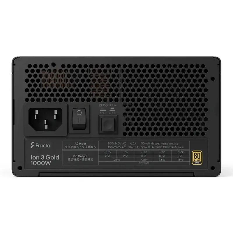 Fuente de alimentación ATX: Fractal Design Ion 3 1000W Negra 80 Plus Gold Full Modular ATX 3.1