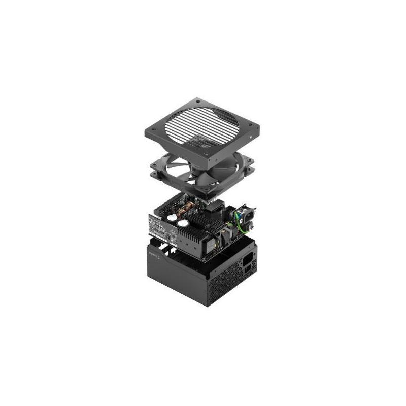 VENTILADOR GRANDE DE BAJA VELOCIDAD: Ion Gold viene equipado con un gran ventilador Fractal Design Dynamic de 140 mm controlado por temperatura, diseñado a medida para el uso en fuentes de alimentación con una velocidad mínima excepcionalmente baja.