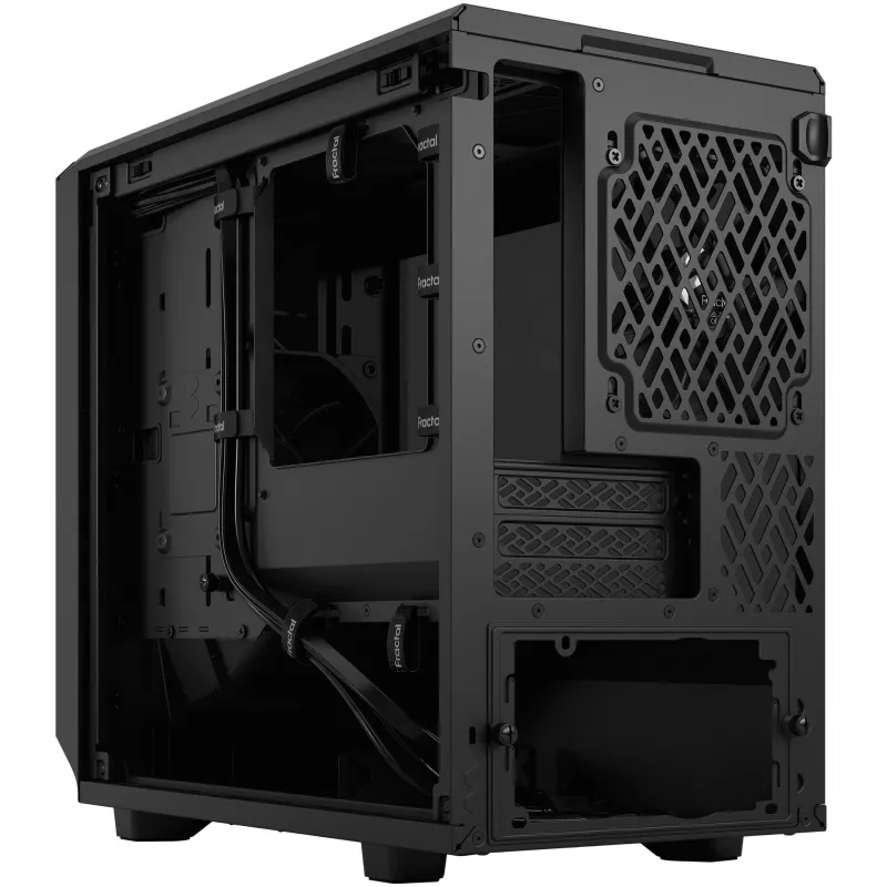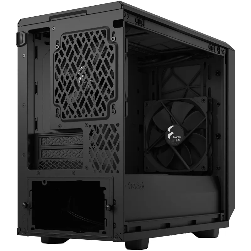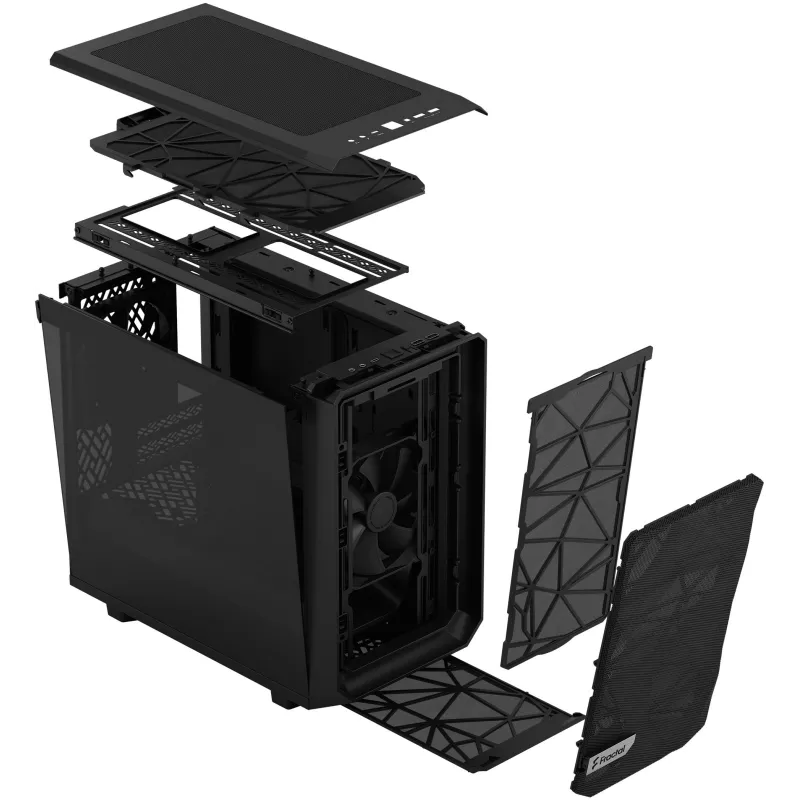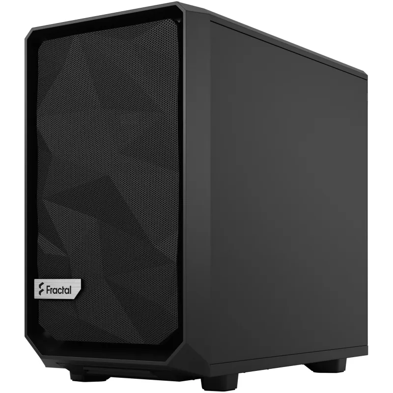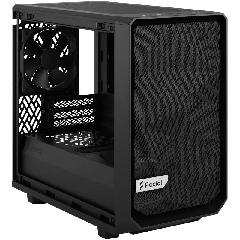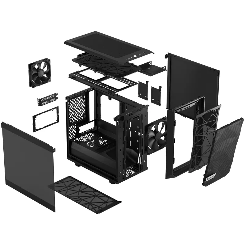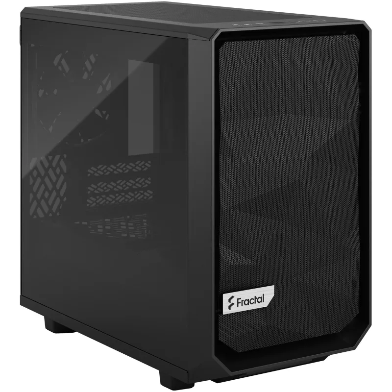 Torre Fractal Design Meshify 2 Nano Black con ventiladores frontales 140 mm, compatible con placas base Mini-ITX y panel lateral de vidrio templado