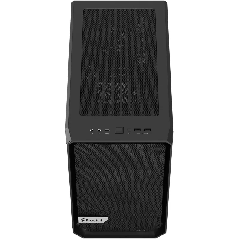 En cuanto a la refrigeración, la Torre Fractal Design Meshify 2 Nano Black incluye de serie un ventilador trasero de 120 mm y un ventilador frontal de 140 mm, ofreciendo un flujo de aire óptimo desde el primer momento. También permite instalar hasta dos ventiladores frontales de 140 mm, dos superiores y uno inferior, con compatibilidad para radiadores de hasta 280 mm en el frontal. Esta capacidad de expansión térmica es ideal para configuraciones exigentes. El panel frontal incorpora dos puertos USB 3.2 Gen 1 tipo A, un USB 3.2 Gen 2 tipo C, así como entrada y salida de audio, lo que facilita la conectividad con periféricos modernos. Con unas dimensiones de 396 mm de profundidad y 361 mm de altura, esta torre ofrece un equilibrio perfecto entre tamaño reducido y capacidad de expansión, siendo perfecta para quienes buscan rendimiento y diseño en un formato compacto.