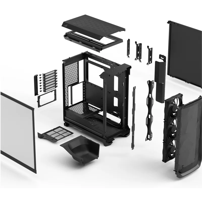 AMPLIA CAPACIDAD DE ALMACENAMIENTO Y EXPANSIÓN: Con una capacidad para cuatro unidades SSD de 2,5 pulgadas y dos discos duros de 3,5 pulgadas, la Torre Fractal Design Meshify 3 Black ofrece un amplio espacio de almacenamiento para todo tipo de usuarios, desde creadores de contenido hasta gamers exigentes. Además, incluye siete ranuras de expansión que permiten añadir tarjetas gráficas, de sonido o de red según las necesidades del sistema. Su compatibilidad con tarjetas gráficas de hasta 34,9 cm y disipadores de CPU de hasta 17,3 cm permite instalar hardware de gama alta sin limitaciones. Esta torre está diseñada para crecer con el usuario, permitiendo actualizaciones y mejoras sin comprometer el espacio ni la ventilación. La estructura interna facilita el montaje y el acceso a los componentes, haciendo que el proceso de instalación sea rápido y cómodo.