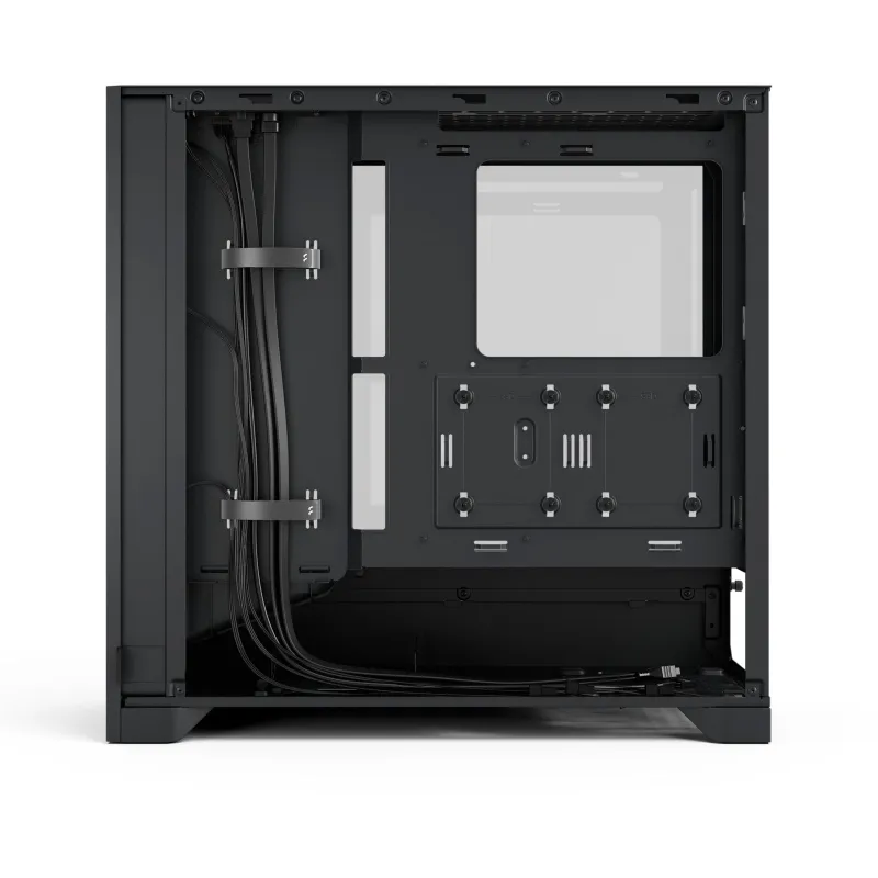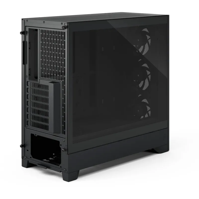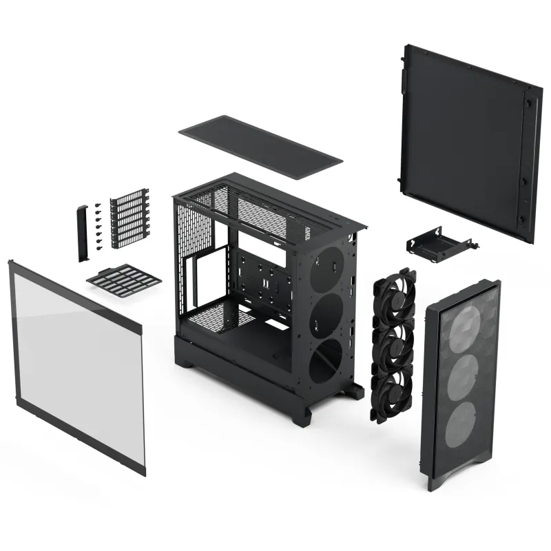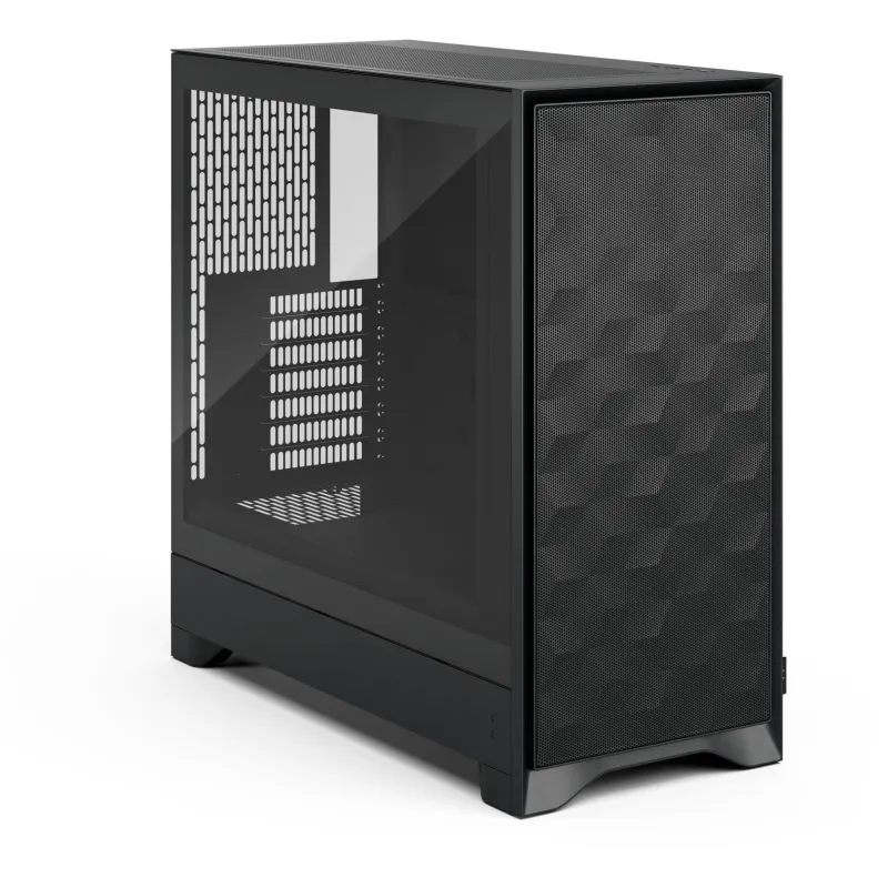 La Fractal Design Pop 2 Air Black TG (FD-C-POA2A-02) es una caja mid-tower orientada a montajes donde el aire importa más que el adorno: frontal tipo mesh, tres ventiladores frontales de 120 mm incluidos y un planteamiento interno pensado para alimentar a la zona de la gráfica con más caudal (incluida una guía de aire hacia la GPU).