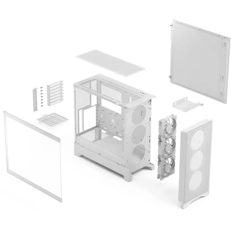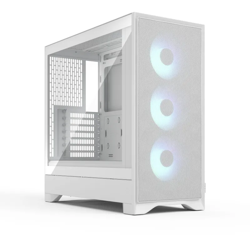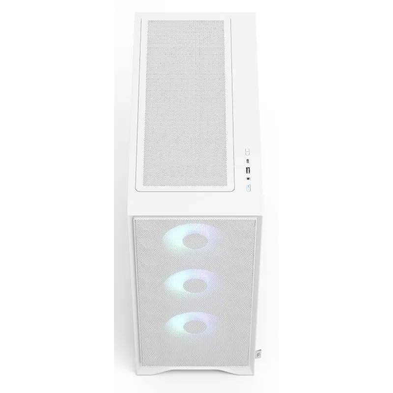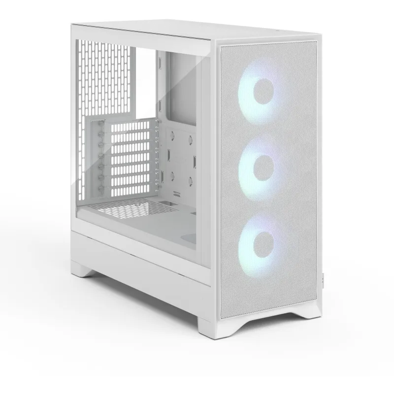 La Fractal Design Pop 2 Air White TG RGB Blanca es una caja ATX tipo midi tower pensada para montajes que respiran: frontal mesh, tres ventiladores frontales de 120 mm y lateral de cristal templado para lucir el interior sin convertirlo en un horno.