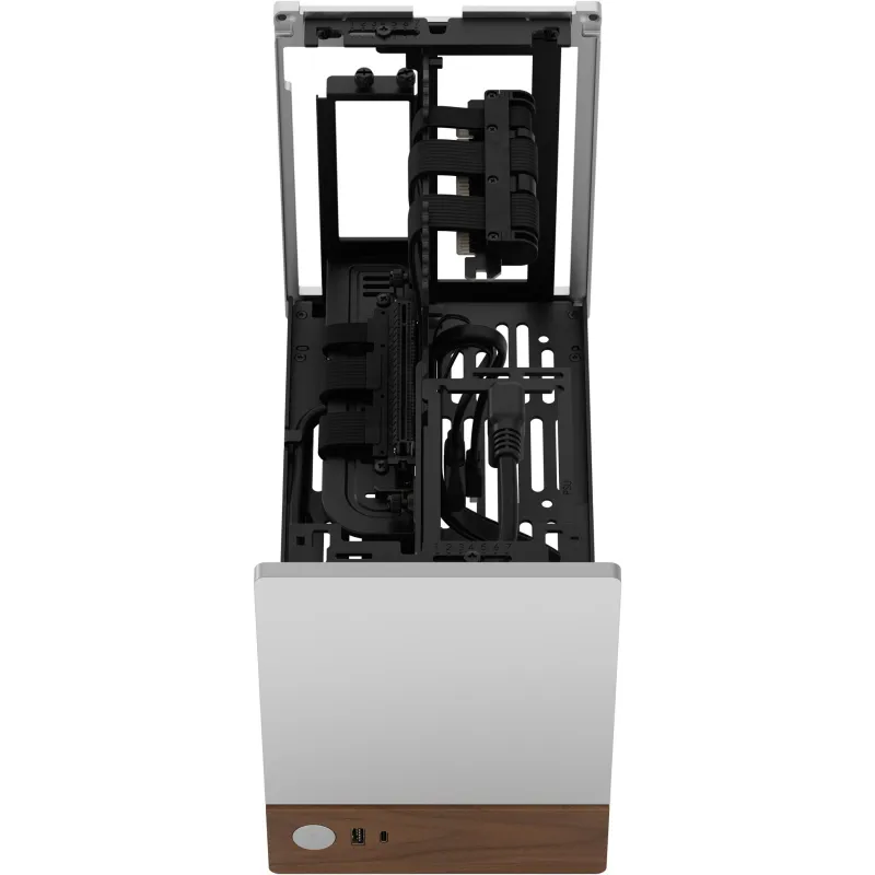 DISEÑADO PARA ELEVAR: Terra es una caja de PC diseñada e ingenierizada para redefinir la experiencia de juego en formato pequeño. Inspirada en los hogares de los jugadores modernos, Terra incorpora características de diseño boutique como paneles gruesos cortados de aluminio anodizado, detalles fresados por CNC y nogal macizo certificado por FSC. En su interior, incluye un cable elevador PCIe 4.0 y cuenta con una pared central deslizante sin escalones para flexibilidad en la construcción, proporcionando espacio para una potente GPU de hasta 322 mm de longitud.