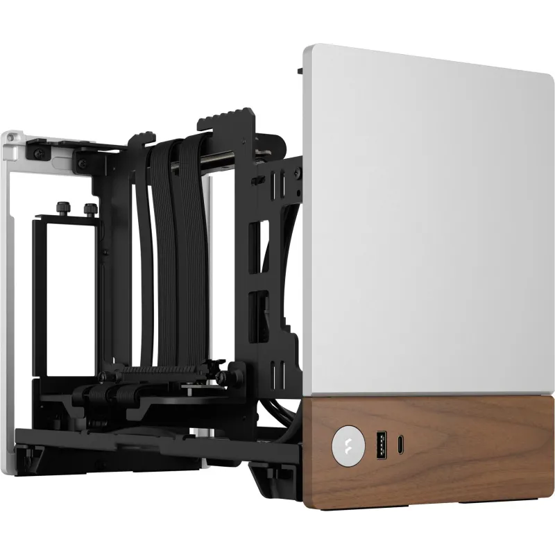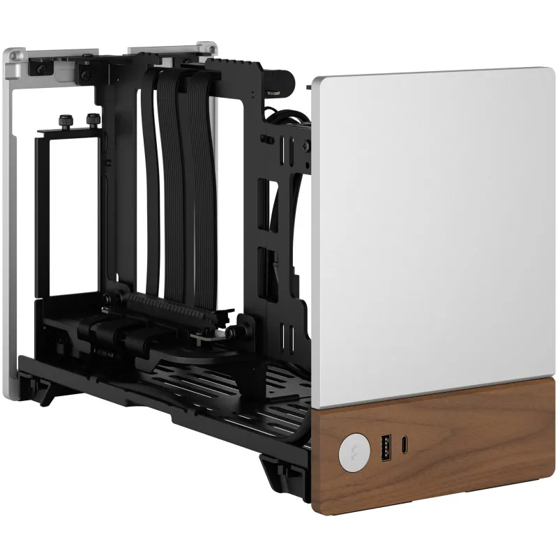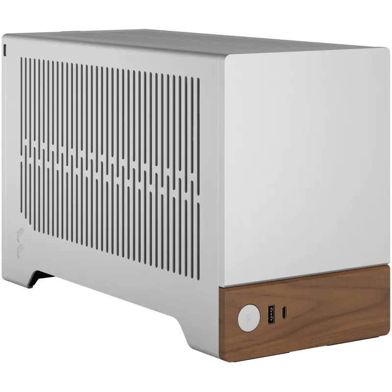 Torre Fractal Design Terra FD-C-TER1N-02 con factor de forma Mini-ITX, diseño en aluminio y nuez, compatibilidad con fuente SFX-L y soporte para GPU de 32cm