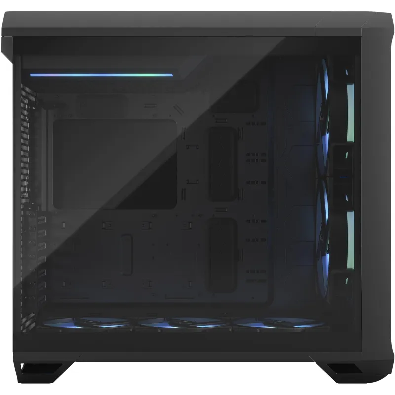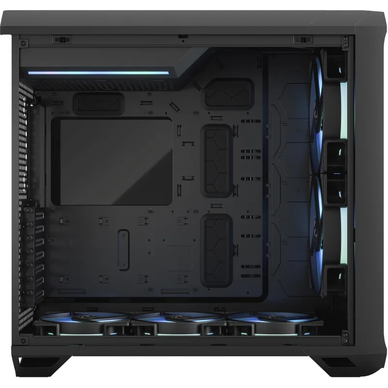 DISEÑO PREMIUM CON VIDRIO TEMPLADO E ILUMINACIÓN RGB INTERNA: La Torre Fractal Design Torrent no solo destaca por su funcionalidad, sino también por su diseño sofisticado. Sus paneles laterales de vidrio templado ofrecen una visión completa del interior, ideal para exhibir tus componentes y la iluminación RGB interna multicolor. Esta combinación no solo proporciona un aspecto moderno y atractivo, sino que también permite personalizar la apariencia según tu estilo. Además, el sistema de iluminación se integra de forma discreta y elegante, realzando la estética sin interferir en la funcionalidad. El chasis incluye también botones de encendido y reinicio fácilmente accesibles, así como filtros antipolvo para mantener el interior limpio durante más tiempo.