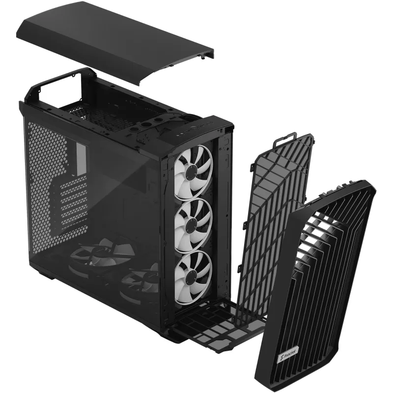 REFRIGERACIÓN DE ALTO RENDIMIENTO CON VENTILADORES FRONTALES 180 MM: La Torre Fractal Design Torrent está equipada con dos ventiladores frontales 180 mm que garantizan un flujo de aire excepcional desde el primer momento. Esta configuración asegura una ventilación eficaz incluso en los sistemas más exigentes, reduciendo la temperatura interna y alargando la vida útil de los componentes. Además, permite instalar hasta tres ventiladores frontales adicionales de diferentes tamaños, adaptándose a tus necesidades. Esta solución térmica también contempla tres ventiladores inferiores de 140 mm ya instalados, lo que maximiza la circulación del aire desde todas las direcciones. Gracias a esta arquitectura, el interior se mantiene fresco incluso bajo cargas de trabajo intensas, ideal para configuraciones de gaming o estaciones de trabajo avanzadas.