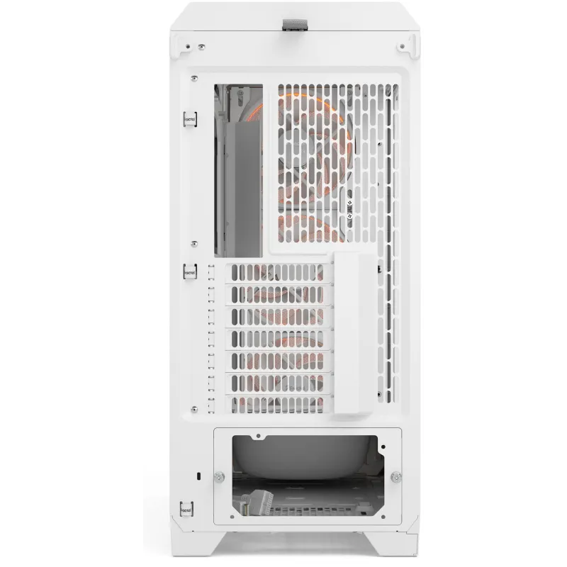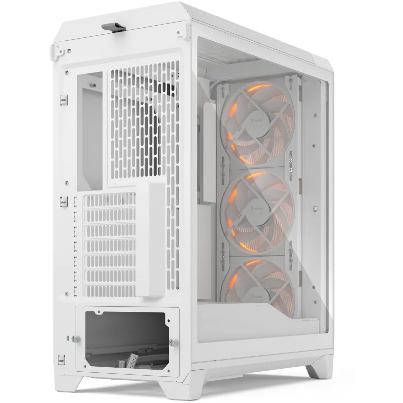 En cuanto a refrigeración, la Torre Fractal Meshify 3 RGB White viene equipada con ventiladores frontales 140 mm preinstalados, garantizando un flujo de aire óptimo desde el primer momento. Soporta hasta tres ventiladores frontales y radiadores de hasta 360 mm, lo que proporciona una excelente capacidad de refrigeración líquida o por aire. En la parte superior se pueden instalar dos ventiladores adicionales, mientras que en la parte trasera admite uno más. La torre también ofrece espacio para unidades de almacenamiento de 2.5 y 3.5 pulgadas, con un total de seis bahías internas. Además, incluye conectividad moderna con puertos USB 3.2 Gen 1 y un USB-C Gen 2x2, permitiendo transferencias de datos rápidas y compatibilidad con los últimos dispositivos. Todo esto se complementa con un diseño optimizado para jugadores, donde cada componente tiene su lugar y función.