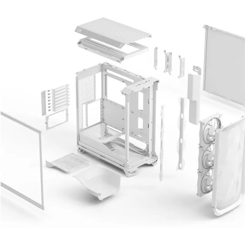 REFRIGERACIÓN AVANZADA CON VENTILADORES FRONTALES 140 MM: La Torre Fractal Meshify 3 RGB White viene equipada con tres ventiladores frontales 140 mm, que aseguran una ventilación potente y constante desde el primer uso. Este sistema de refrigeración permite mantener temperaturas óptimas incluso en configuraciones exigentes. Además, admite múltiples combinaciones de ventiladores y radiadores en la parte frontal, superior y trasera, lo que proporciona flexibilidad para personalizar la refrigeración según las necesidades del usuario. El flujo de aire optimizado, junto con los filtros anti-polvo incluidos, garantiza un entorno limpio y libre de partículas, prolongando la vida útil de los componentes internos. Una solución ideal para entusiastas del hardware que buscan rendimiento y fiabilidad térmica.
