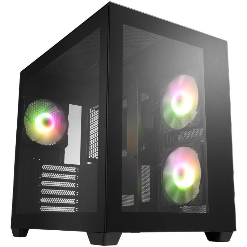 Torre FSP CMT380 ATX Micro Mini-ITX con panel de vidrio iluminación RGB gran capacidad de enfriamiento y compatibilidad con GPUs de hasta 41 cm, color Negro