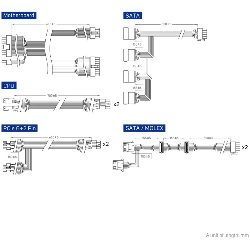 - Longitud del cable de alimentación SATA: 500 mm