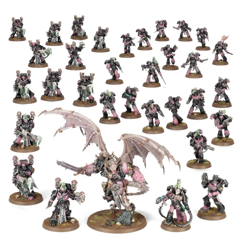 Al ser una Battleforce orientada a Warhammer 40.000, está pensada para ampliar tu colección de Ejércitos del Caos en una sola compra.