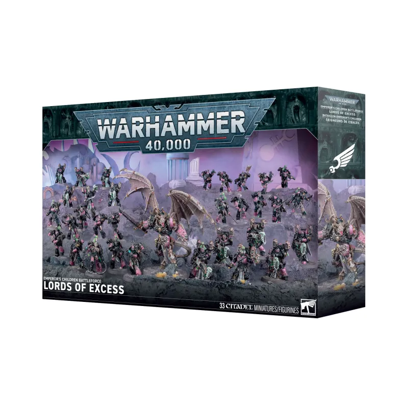 El formato Fuerza de batalla está orientado a ampliar colección en Warhammer 40.000, con una referencia única centrada en Ejércitos del Caos y en el nombre “Lords of Excess / Señores del Exceso”.