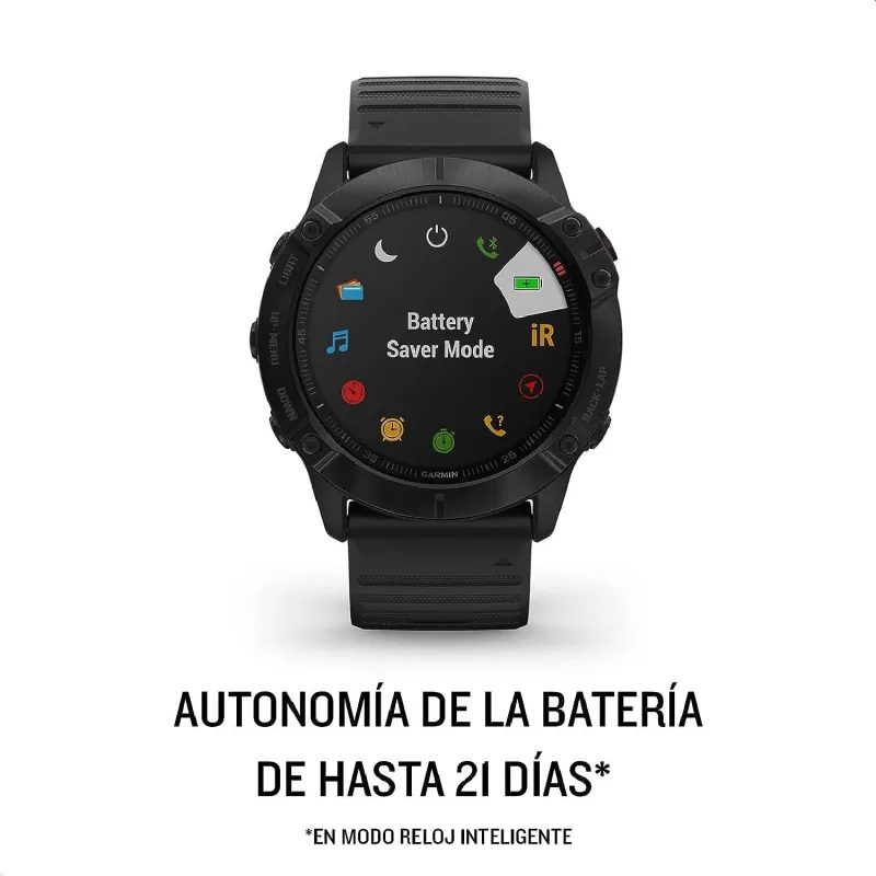 DEMUESTRA DE QUÉ PASTA ESTÁS HECHO: Supera nuevos límites y explora nuevos desafíos a la vez que complementas tus sesiones de entrenamiento con mapas, música, control inteligente del ritmo y mucho más gracias a la selección de relojes inteligentes de calidad superior f?nix 6X.